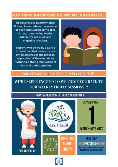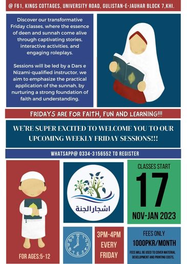 Mark your calendars and bring your enthusiasm! Let's make this journey of discovery together as we delve into the beauty of deen with stories that captivate, activities that engage, and role plays that bring teachings to life. We look forward to seeing you all at the upcoming session – an experience you won't want to miss!